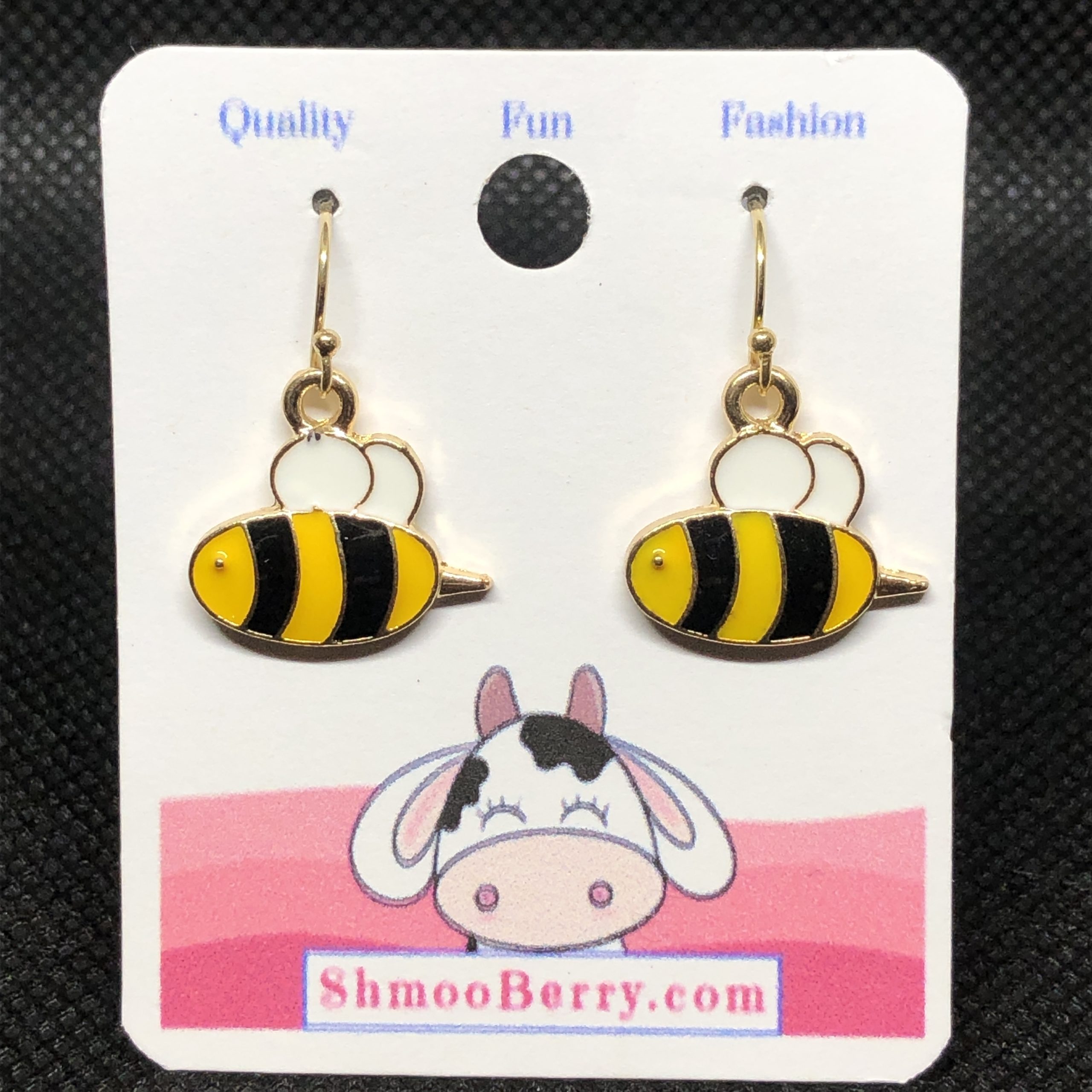 Made with 14k gold-filled earring wires and gold plated bumble bee dangles.