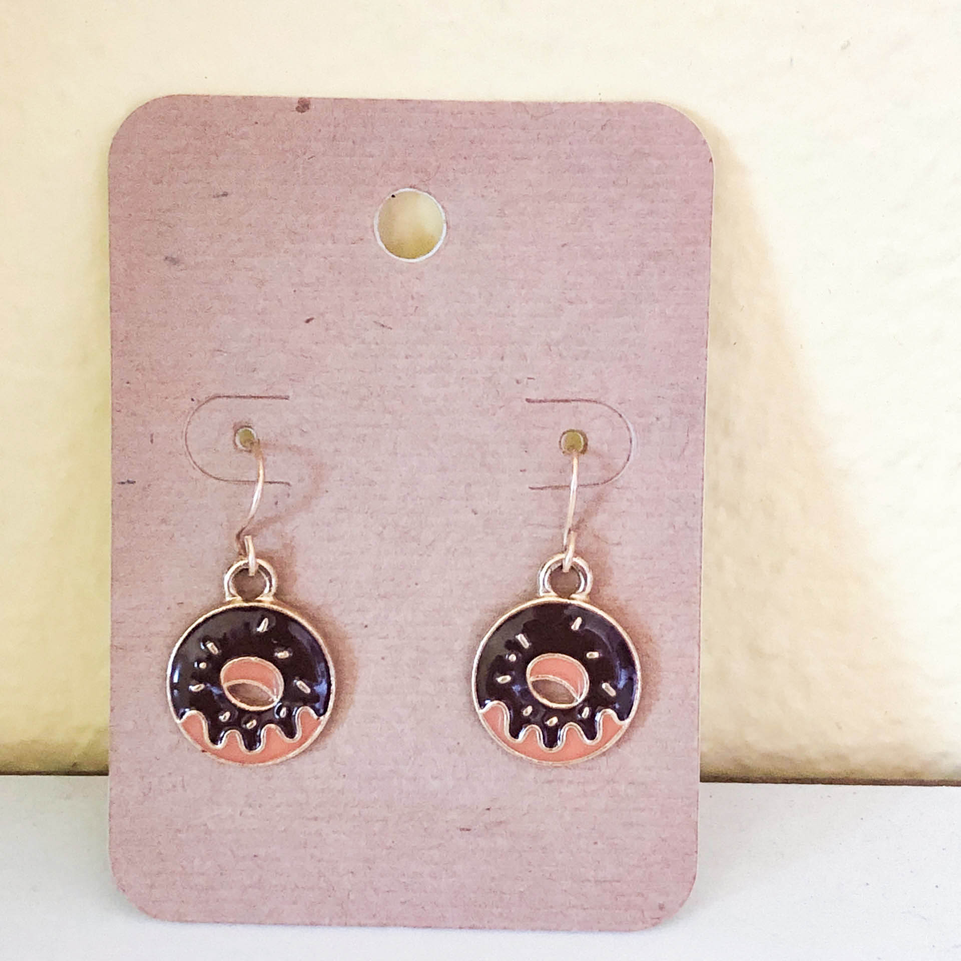Made with 14k-gold filled earring wires and gold plated enamel donut dangles.