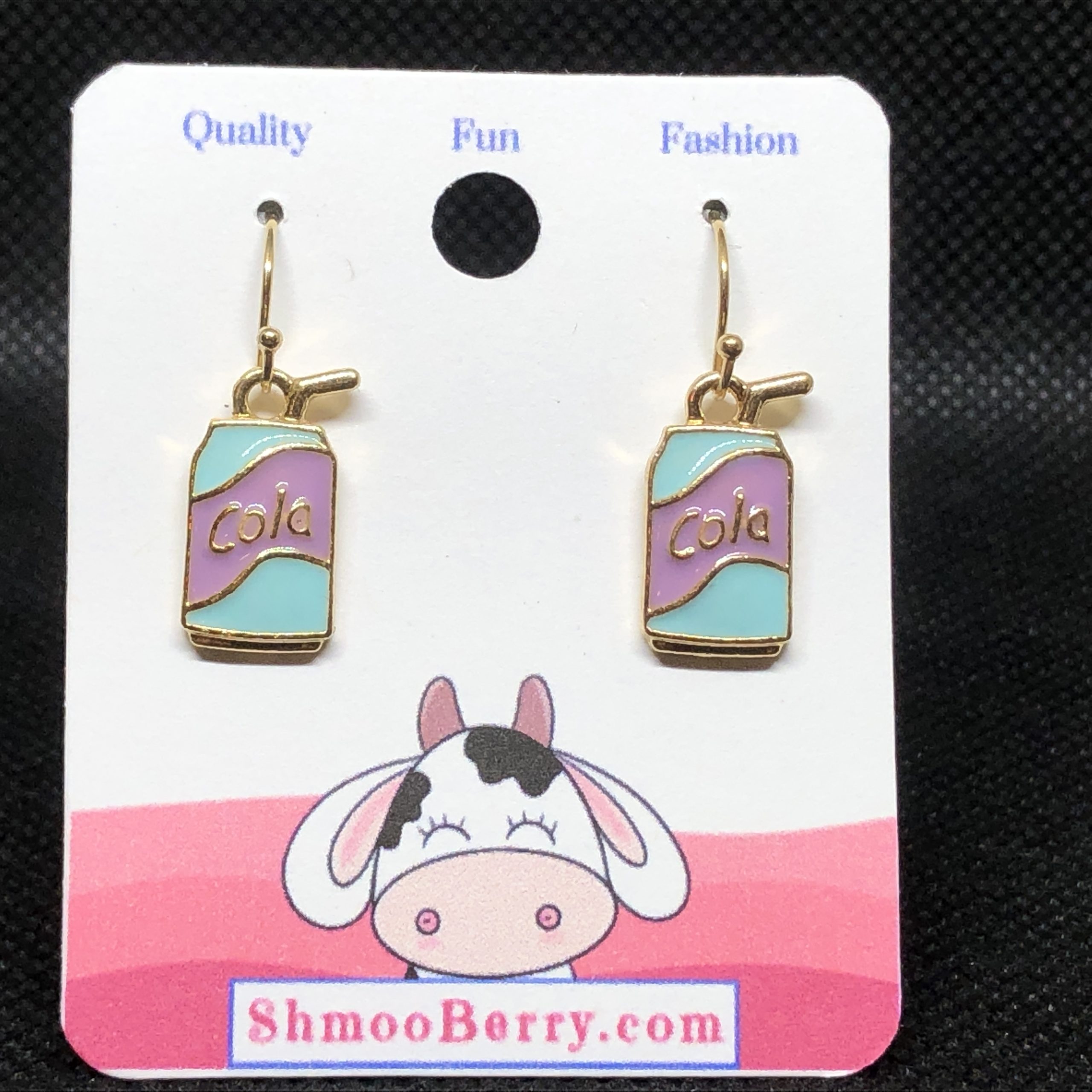 Quench your thirst for fun accessories with some Purple soda earrings! Also available in pink.